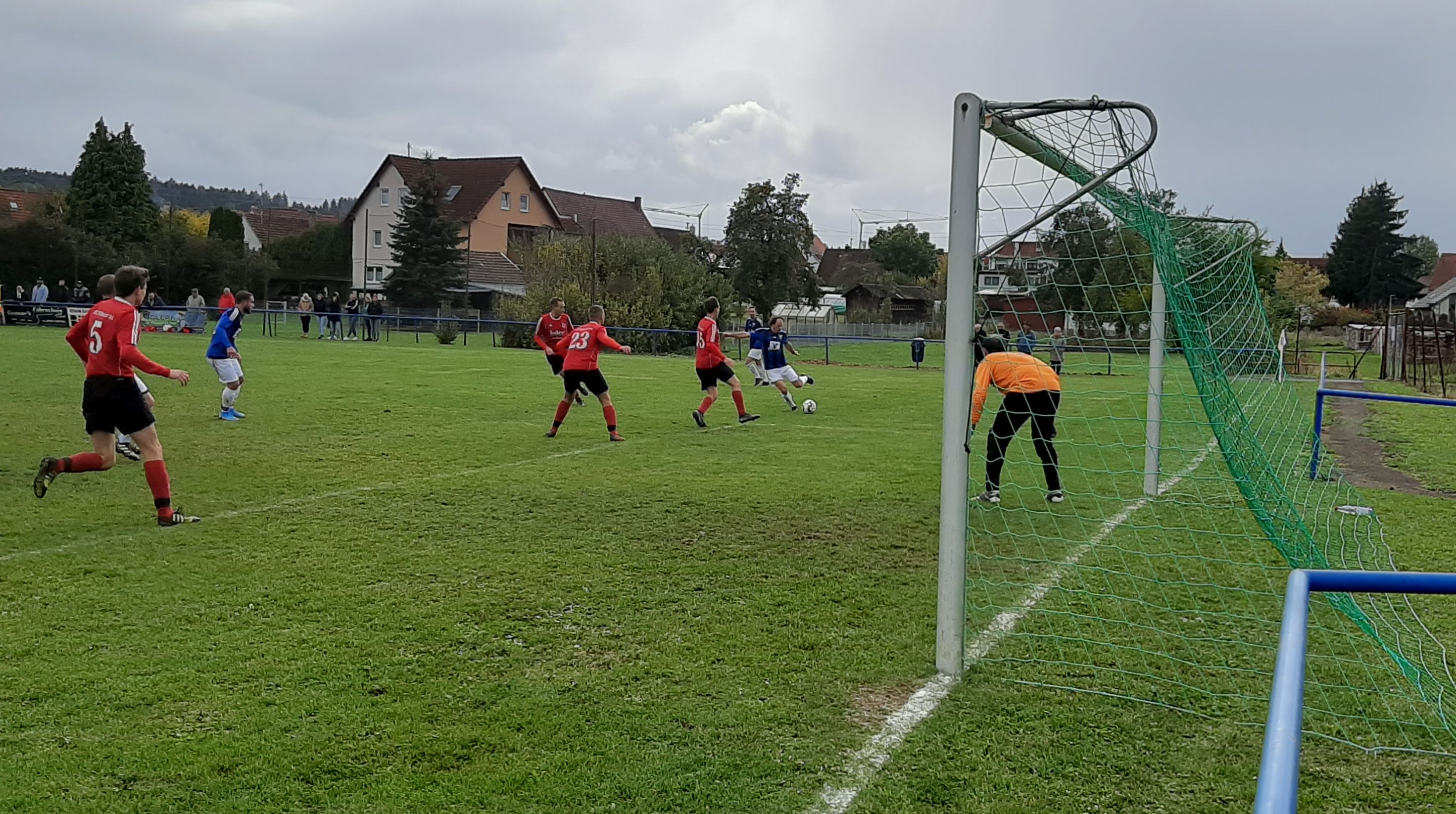 Vor heimischer Kulisse und bei leichtem Nieselregen begann das Spiel wie erwartet. Geislingen machte Druck, die Gäste agierten aus einer kompakten Defensive heraus. Schon nach wenigen Minuten konnten die Hausherren einige klare Torchancen erarbeiten, die leider nicht genutzt wurden. Erst als Patrick Müller (19´) einnetzte, schien der Bann gebrochen. Auf dem rutschigen Boden erarbeiteten die Hausherren weitere hochkarätige Möglichkeiten, die allesamt nicht genutzt wurden und so ging es mit der knappen Führung in die Halbzeit. Nach Wiederbeginn passte sich dann unser Spiel dem der Gäste an. Lange Bälle, halbhohe Anspiele und einige Stockfehler waren das Resultat. In dieser Phase lief nicht viel zusammen und nach einem Ballverlust im Aufbauspiel kam dann auch der Ausgleichstreffer. Nach sattem Schuss konnte unser Keeper den Ball nicht festhalten und beim Nachsetzen erwischte er den Gästespieler im Strafraum am Fuß. Ein Foulelfmeter für die Gäste war die Folge und Sven Würziger (54´) verwandelte sicher zum Ausgleich. Nun erhielten die Kicker aus dem Killertal nochmals einen Schub und nur 5 Zeigerumdrehungen später hämmerte ein Spieler das Spielgerät freistehend an die Querlatte. Von dieser Aktion geweckt und einer deutlichen Ansprache von der Bank besonnten sich die Geislinger nun wieder auf das Wesentliche. Nach einem Eckball zauberte unser Filigrantechniker Andi Bühler (70´) den Ball an zwei Gegenspielern vorbei und markierte die Führung. Nun lief es wieder etwas besser und es konnten weitere Chancen herausgespielt werden. Leider klebt im Moment das Pech an manchem Kickstiefel und so war es Defensivspezialist Matze Straub (83´) der wiederum nach einem Eckball den Schlusspunkt setzte. Alles in allem ein verdienter Sieg, jedoch bleibt spielerisch noch Luft nach oben.